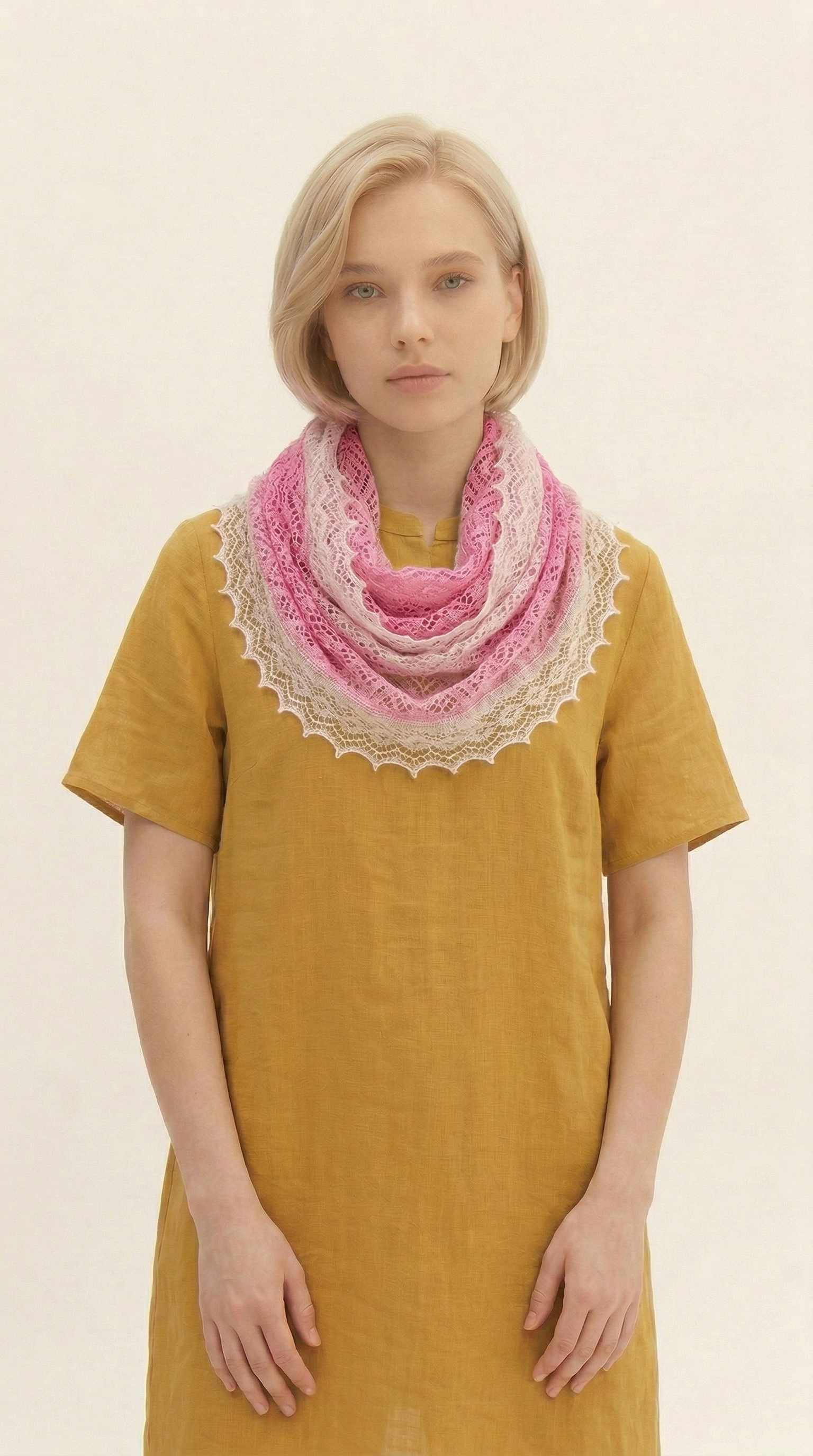 Ажурный летний палантин МА12040-15/02 розовый/экрю от Фабрики Оренбургских пуховых платков