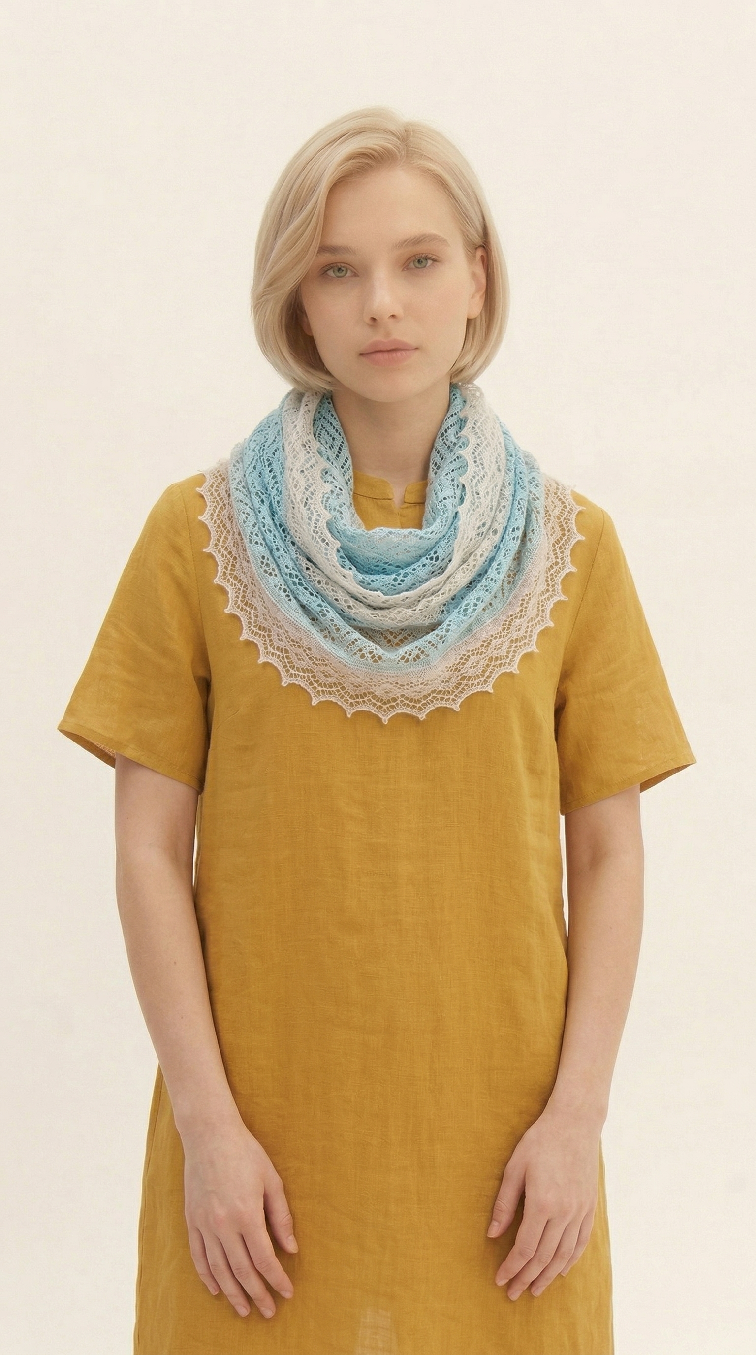 Ажурный летний палантин МА12040-24/02 небесный от Фабрики Оренбургских пуховых платков