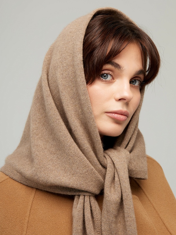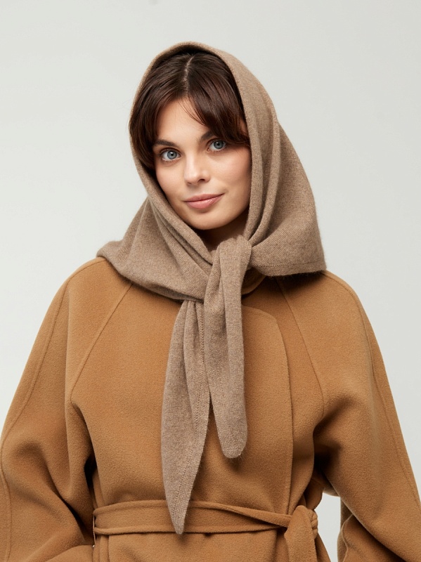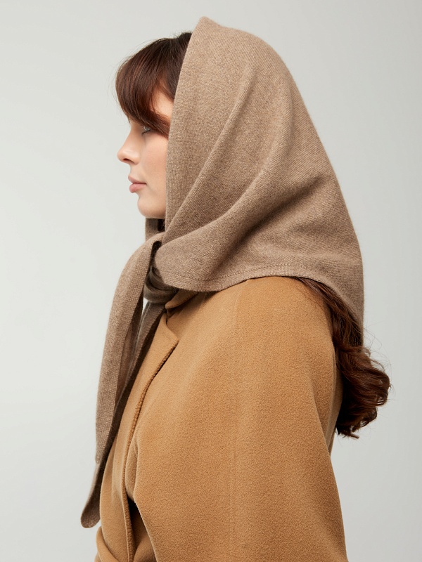 Оренбургский платок-косынка К802-29 т.бежевый от Фабрики Оренбургских пуховых платков