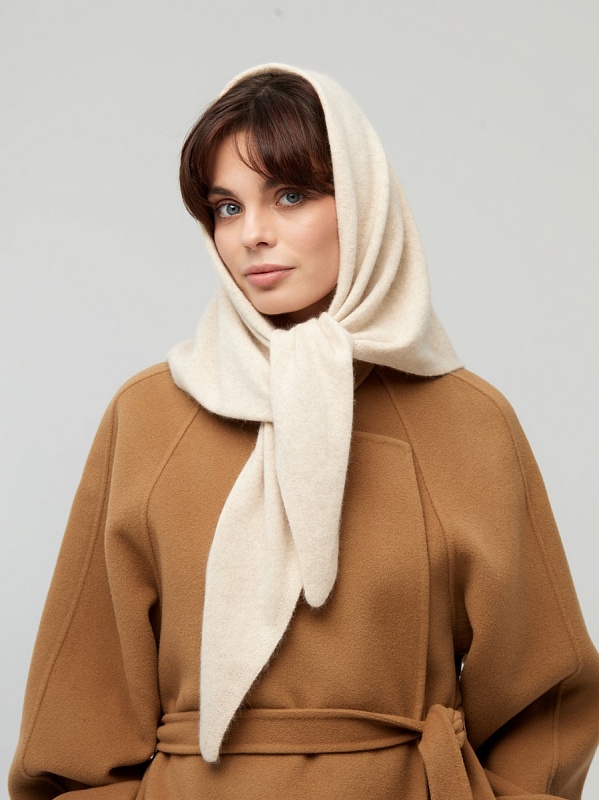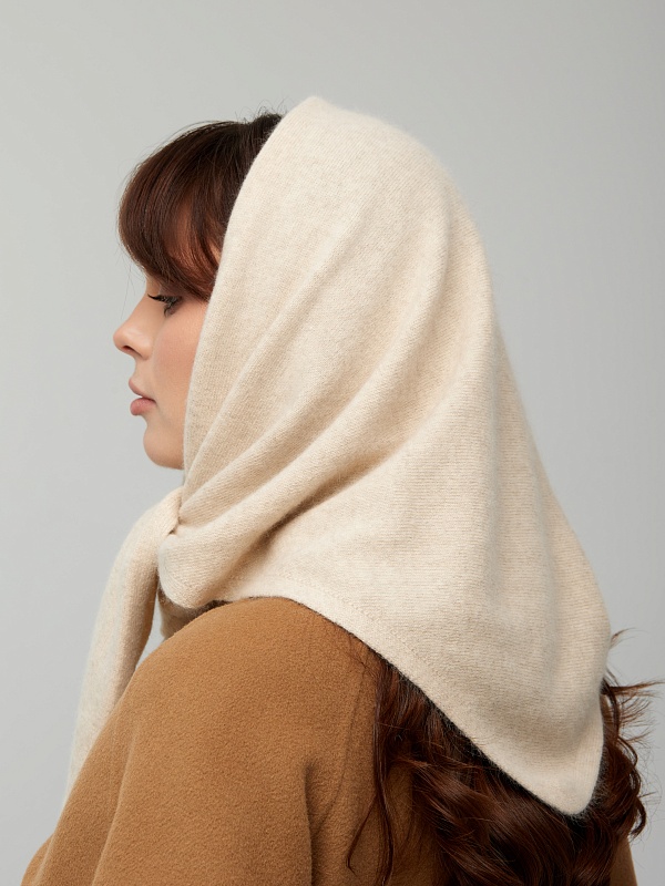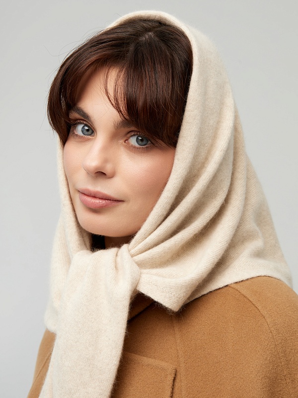 Оренбургский платок-косынка К802-08 бежевый от Фабрики Оренбургских пуховых платков