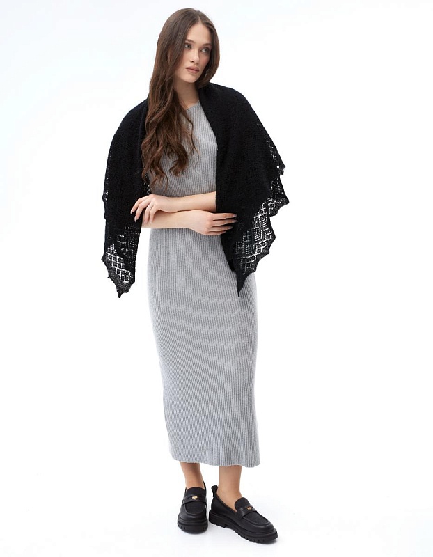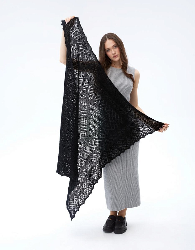 Оренбургский пуховый платок П4-110-07 черный