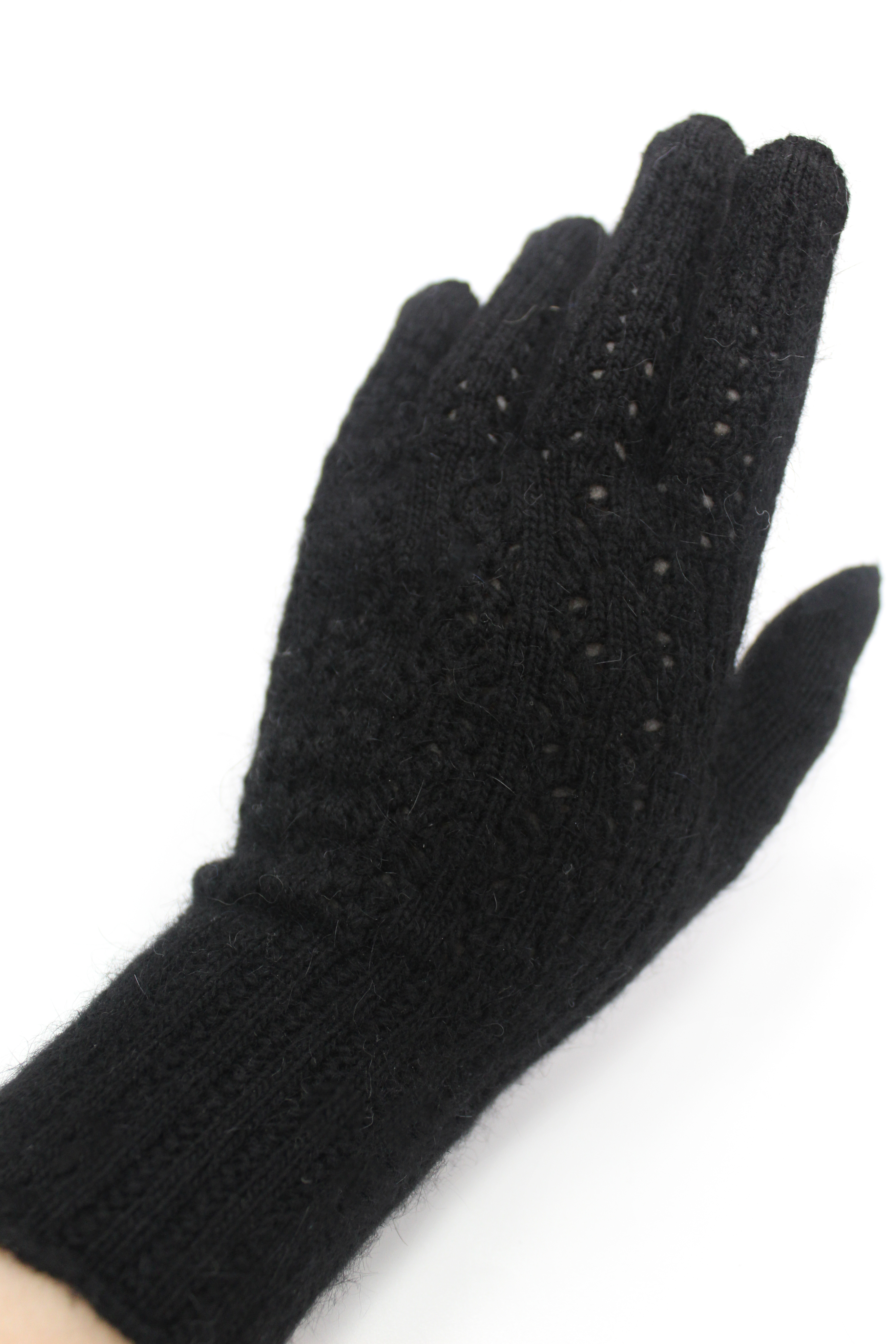 Ажурные перчатки черного цвета плотно обнимают руки, доставляя чувство исключительного комфорта. Ажурный перфорированный рисунок, украшающий их тыльную сторону, подчеркивает изысканность. Внутренняя часть перчаток выполнена плотной густой гладью, придающей им дополнительную прочность. Манжета, сделанная в форме резинки, обрамляет запястье и одновременно обеспечивает надежную защиту от холодного ветра. Дизайнеры предусмотрели два размера перчаток – 16 (S-M) и 18 (M-L) - измерение ладони в самом широком месте обеспечивает точность подбора. С элегантными черными красавицами на руках, каждый желающий может почувствовать себя настоящей звездой!