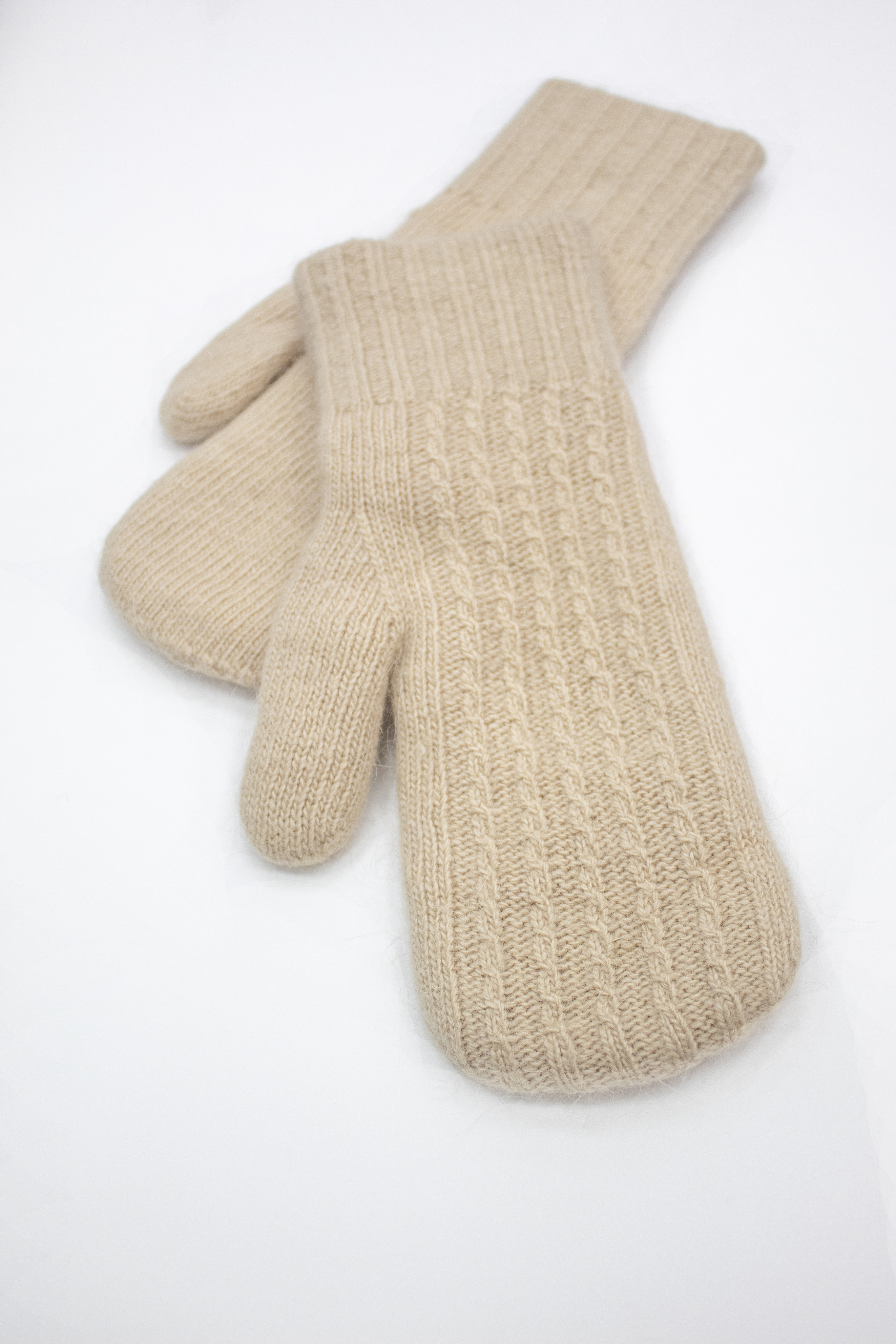 Данная модель варежек двойная, что делает их особенно тёплыми и мягкими. Чтобы подобрать размер варежек, измерьте обхват ладони в самой широкой части без учёта большого пальца — полученное значение в сантиметрах и будет вашим размером.